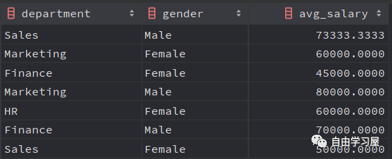 2.1 查询每个部门中男女职工的平均薪水