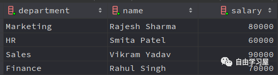 1.1 假设我们有一张示例数据表“employees”,包含以下列: