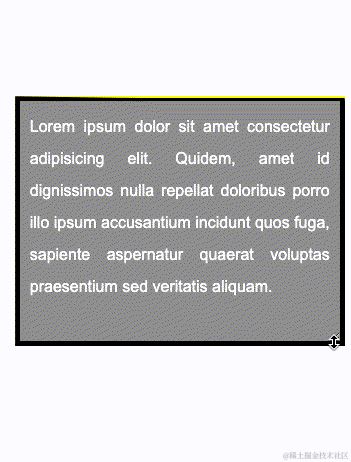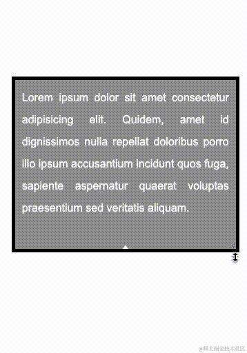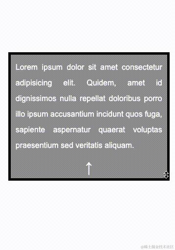 其中,我们给元素 .g-content 添加了 resize: vertical,让它变成了一个可以在竖直方向上通过拖动改变高度的容器,以模拟容器在不同内容的场景下,高度不一致的问题: