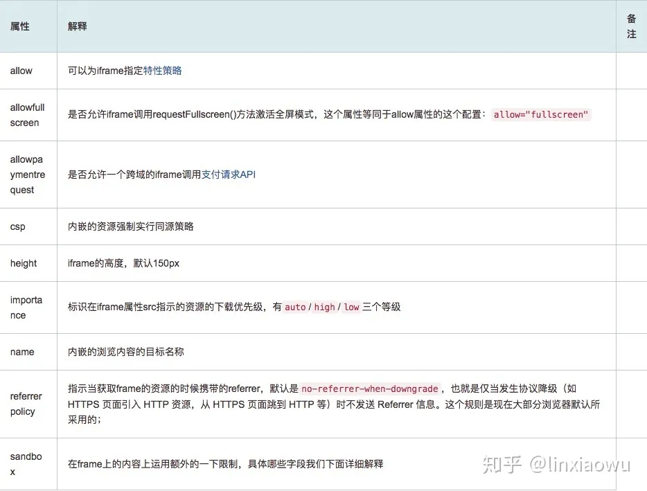iframe的特性都是依赖参数配置实现的,现整理如下有用的属性: