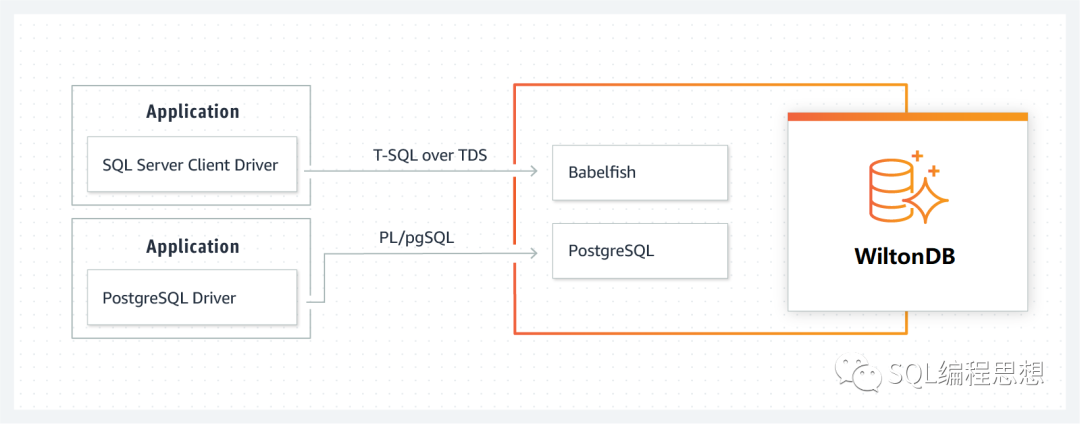 Babelfish 是亚马逊提供的一个开源项目,使得 PostgreSQL 数据库同时具有 Microsoft SQL Server 数据查询和处理的能力。Babelfish 可以方便地将 Microsoft SQL Server 应用程序迁移到 PostgreSQL,需要改动的代码很少甚至不需要改动。