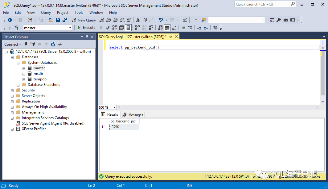 Microsoft SQL Server Management Studio(SSMS)可以用于连接 WiltonDB,默认端口为 1433。