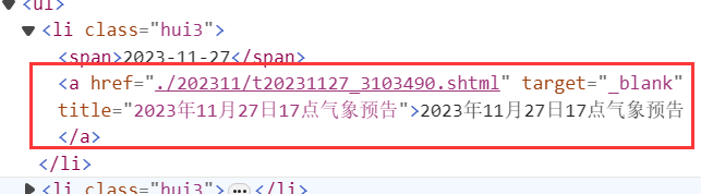 这段代码获取a标签中href属性的值,这里是./202311/t20231127_3103490.shtml。