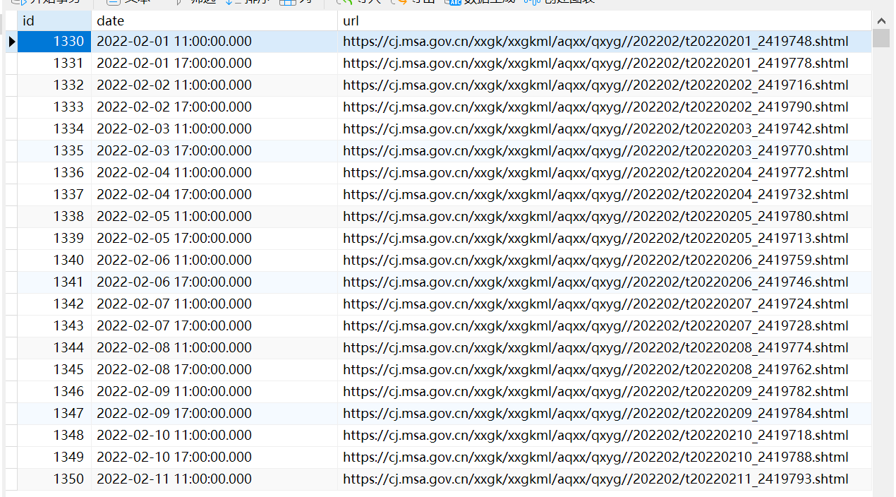 可以进一步构建每一天的URL,同时可以根据a的文本获取时间,当然也可以通过其他方式获取时间,但是这种可以获取到11点或者17点。