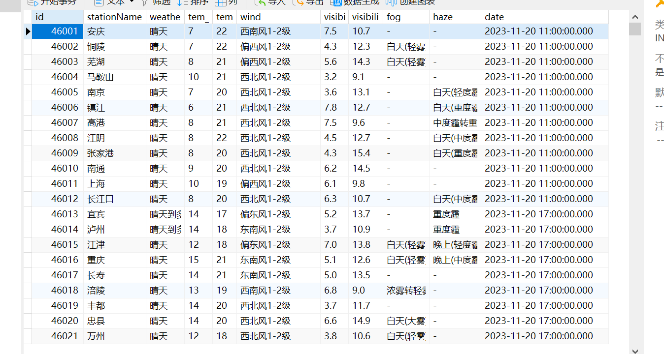 这里使用swith case是因为网页的格式并不是一层不变的,有时候少了一列,没有霾的数据。