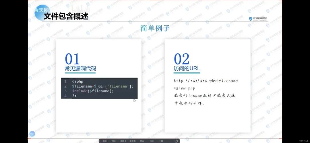 程序开发人员都希望代码更加灵活,所以通常会把被包含的文件设置为变量来进行动态调用,但正是由于这种灵活性,从而导致客户端可以调用任意文件,造成文件包含漏洞
