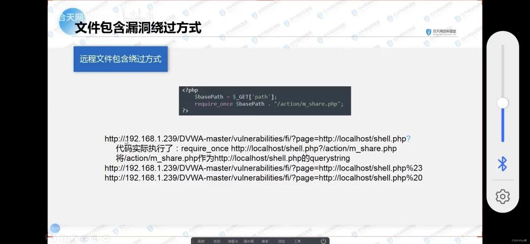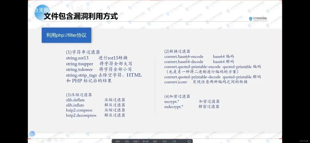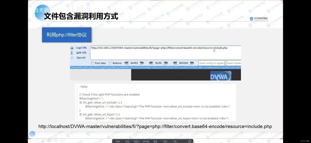 由于Include/Require可以对PHP Wrapper形式的地址进行包含执行(需要配置php.ini),在 Linux环境中可以通过”../../”的形式进行目录绕过,所以需要判断文件名称是否为合法的PHP 文 件。