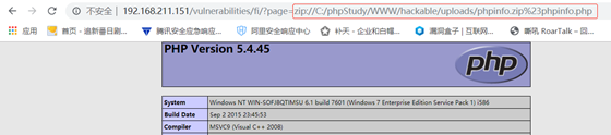 通过zip://协议执行zip压缩包中的phpinfo.php文件: