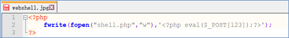 注:我们也可以直接在webshell.jpg中写一句话木马,然后再通过文件包含漏洞去连接webshell.jpg,但这种方法有时候webshell功能会出现异常。所以我们选择上面的方式,生成一个.php格式的一句话木马,再去连接。