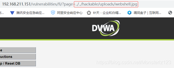 现在我们利用该页面去执行我们上传的图片马,路径需要从C:\phpStudy\WWW\vulnerabilities\fi\ 转到C:\phpStudy\WWW\hackable\uploads\webshell.jpg