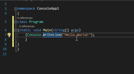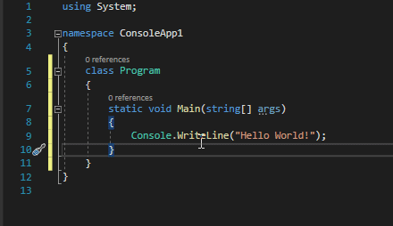 class program        static void main(string[] args)             {                    Console.WriteLine("Hello World!");         }  }