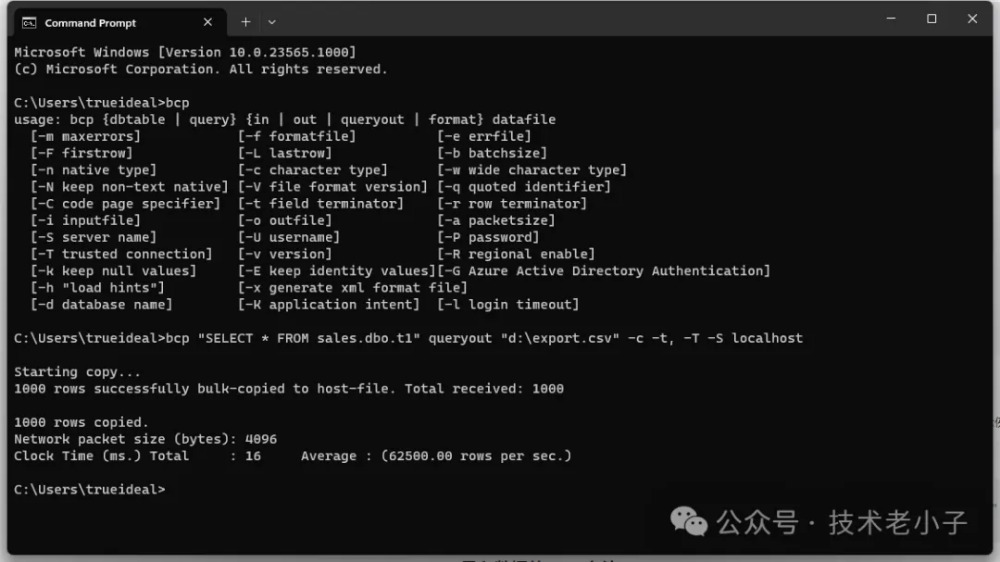 bcp 是 SQL Server 提供的一个命令行工具,可以用来导入和导出数据。以下是一些 bcp 使用示例。