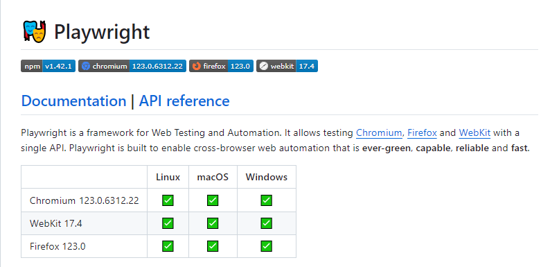 因此,Playwright 在很多方面与 Puppeteer 非常相似。API 方法在大多数情况下是相同的,并且默认情况下 Playwright 还捆绑了兼容的浏览器。
