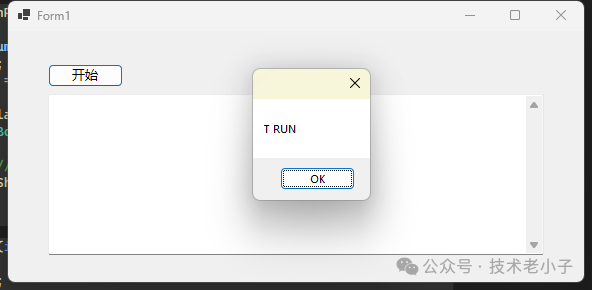 再来一个例子 private void btnRun_Click(object sender, EventArgs e) { Task<int> sum = new Task<int>(() => Sum(1000000)); sum.Start(); Task.Run(() => { Task.Delay(5000).Wait(); MessageBox.Show("T RUN"); }); sum.Wait();//等待任务的完成执行过程 MessageBox.Show(sum.Result.ToString()); } private int Sum(int len) { int sum = 0; for (int i = 0; i < len; i++) { sum += i; } return sum; }