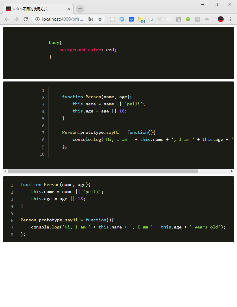 </pre><!-- JavaScript代码 --><!-- 使用行号插件和高亮插件 --><pre><code class="language-javascript line-numbers">function Person(name, age){