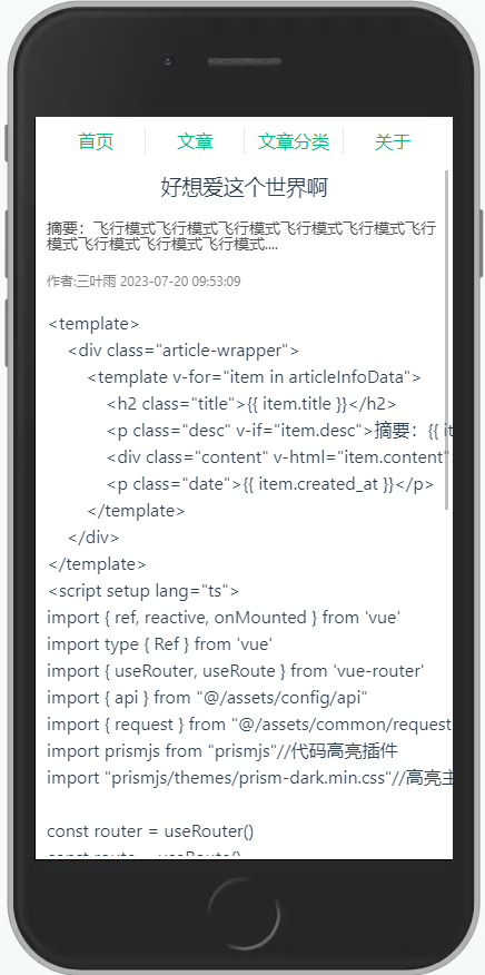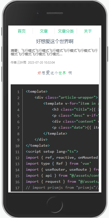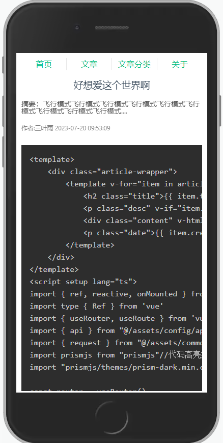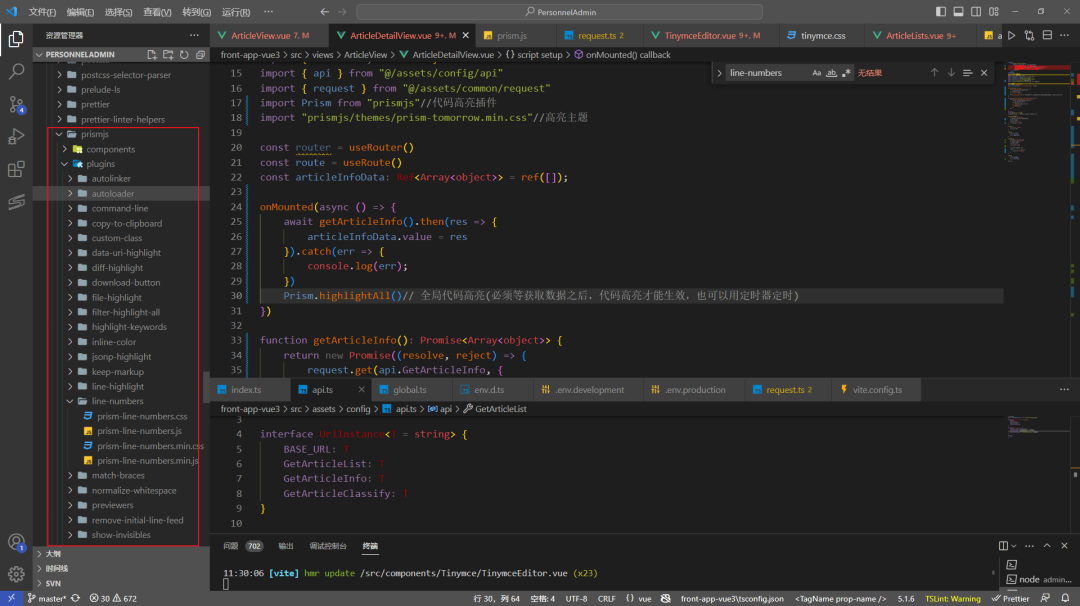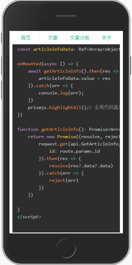 后来在网上找到了代码高亮库prismjs并愉快的添加到了Vue3+Ts项目中