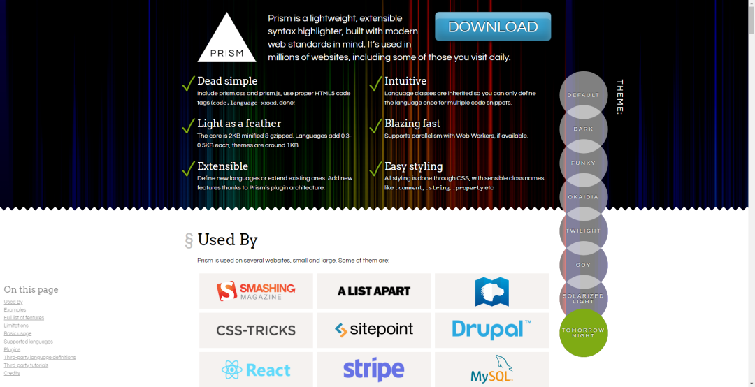 官方是这样描述的,他是一个非常简单快速可拓展且支持超多语言的轻量级代码高亮库。官网地址