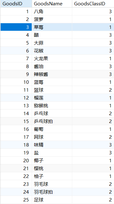 (2)创建查询指定商品类别的函数,Tbl_Goods和Tbl_GoodsClass表如下图所示:
