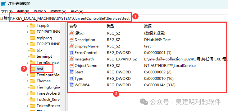 在Parameters键下创建一个新的字符串值,命名为Application,并将其值设置为你的exe文件的完整路径,比如C:\\YourService\\your_exe_file.exe。