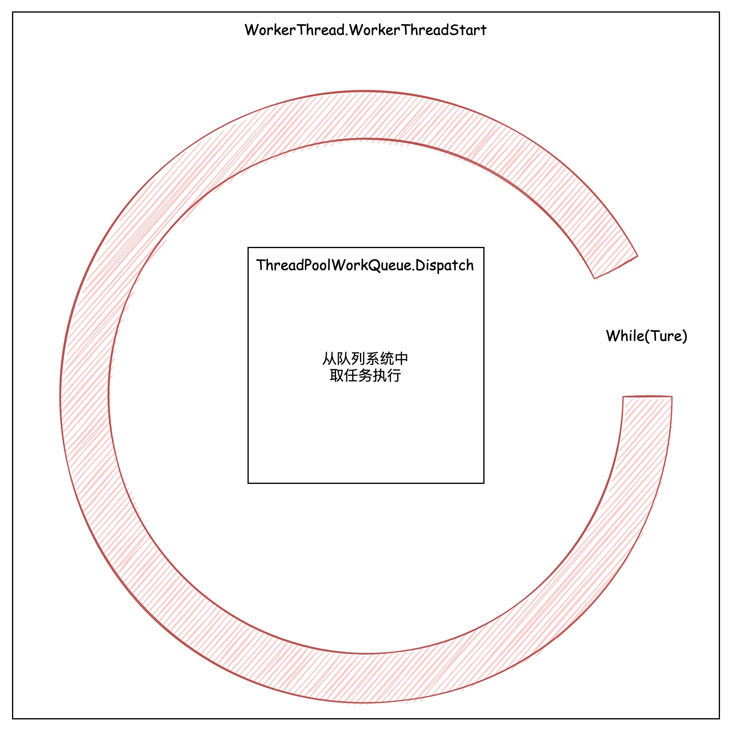 交给线程池去执行的任务会进入线程池的队列系统最终交给 Worker Thread 去执行。