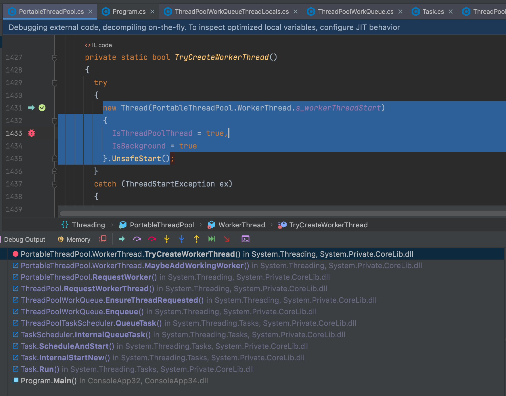新的线程池实现位于 PortableThreadPool 中,原 ThreadPool 中的对外公开的接口会直接调用 PortableThreadPool 中的实现。