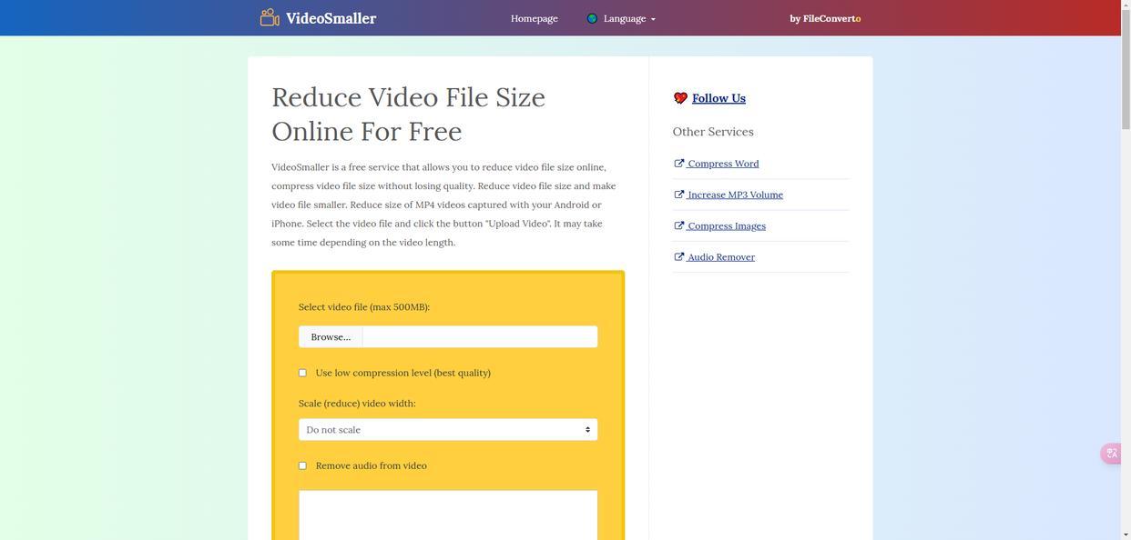 VideoSmaller 是一个专门用于视频压缩的在线工具,它的特点是操作简单,用户只需上传视频,选择压缩后的视频质量,即可自动进行压缩。