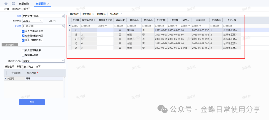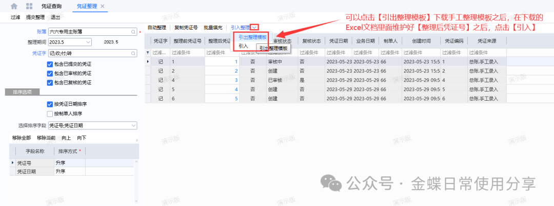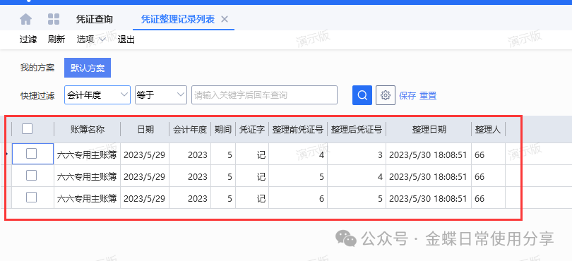 ![]() ![]() ![]() 3、凭证整理后系统自动记录整理过的凭证信息,通过【凭证整理记录】可以查看哪些凭证被整理过,以及整理前后的凭证号、整理人和整理时间等相关。 ![]() ![]() 注: ①凭证整理后不支持取消,若要调整需要重新进入凭证整理列表手工调整。 ②一般凭证过账不允许有断号,过不了账则总账无法结账,如一定要设置断号允许过账,可参考方案:凭证过账如何设置允许断号、总账结账流程。 阅读原文:原文链接 点晴模切ERP更多信息:http://moqie.clicksun.cn,联系电话:4001861886 该文章在 2025/8/15 12:18:33 编辑过 |