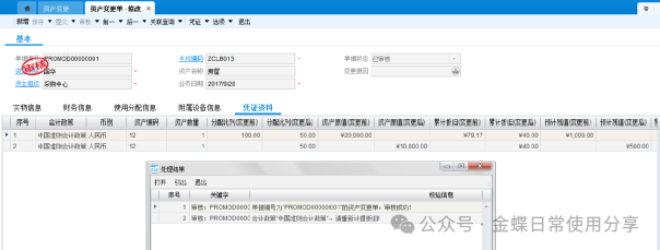 折旧之后,系统自动生成折旧调整单,审核折旧调整单并生成凭证。