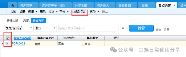 提交审核后,回到盘点方案列表,选中盘点方案并点击生成盘点表