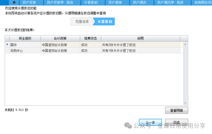 注:当资产做非财务变更不需要做新的折旧计提,当资产财务变更的情况下需要做折旧计提(计提方法看第四章 1.固定资产折旧计提)