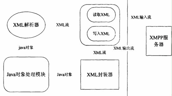 通讯模块负责与服务器建立通讯旧。通过创建3个线程来进行处理。分别负责消息的发送、接收和心跳信息的发送;解析模块主要用来解析XML数据流。根据解析元素不同类型封装成不同的数据对象:数据模块定义整个客户端中大部分的数据类型和对象;应用模块包括即时通信、图片浏览和音乐播放。是客户端和用户交流的接口;加密模块对发送和接收的消息进行加解密。以确保通讯数据的安全。 加密(首先将二进制码转换成BASE64码,在转换成BASE64码之后,再进行MD5加密,) XMPP服务器之间、客户与服务器之间采用的是TCP连接。TCP提供一种双向连接、可靠的字节流服务。保持一个实时双向的传输通道。TCP将用户数据打包构成报文段。它发送数据后启动一个定时器,等待对端数据确认,另一端对收到的数据进行确认,对失序的数据重新排序,并丢弃重复数据;TCP提供端到端的流量控制。计算和验证一个强制性的端到端检验。但是GPRS网络对TCP链路存在一个限制。当TCP链路在长时间无有数据流量时。会自动降低此链路的优先级直至强制断开此链路。所以在应用中.采用发送心跳的方式来维持此链路。数据格式 XML是XMPP系统架构的核心。它能表述几乎任何一种结构化数据。特别是XMPP利用XML数据流进行客户端一服务器端、服务器端一服务器端的通信。XML数据流一般是由客户端发起至服务端,XML数据流的有效时间直接与用户的在线会话有效时间相关联。 协议消息格式XMPP协议包括3个顶层XML元素:Message、Presence和IQm。Message用来表示传输的消息,当用户发送一条消息时。就会在流的上下文中插入一个Message元素,中间有用户发送的相关信息;Presence用来表示用户的状态。当用户改变自己的状态时。就会在数据流的上下文中插入一个Presence元素,用来表示用户现在的状态;IQ用来表示一种请求,响应机制,从一个实体发送请求,另外一个实体接受请求并响应。 后台Servic: